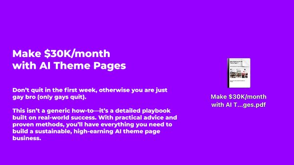 “AI Theme Pages: Your $30K Monthly Blueprint” presents itself as an essential, detailed resource for leveraging AI to create and monetize theme pages, promising a clear path to significant monthly earnings through proven strategies, actionable steps, and insights derived from successful models.