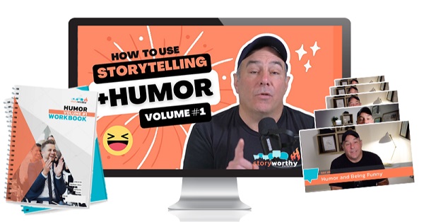 You’ll learn all the foundations of humor including; when and why to be funny, finding where humor hides, 3 perspectives of humor, delivery, and more.